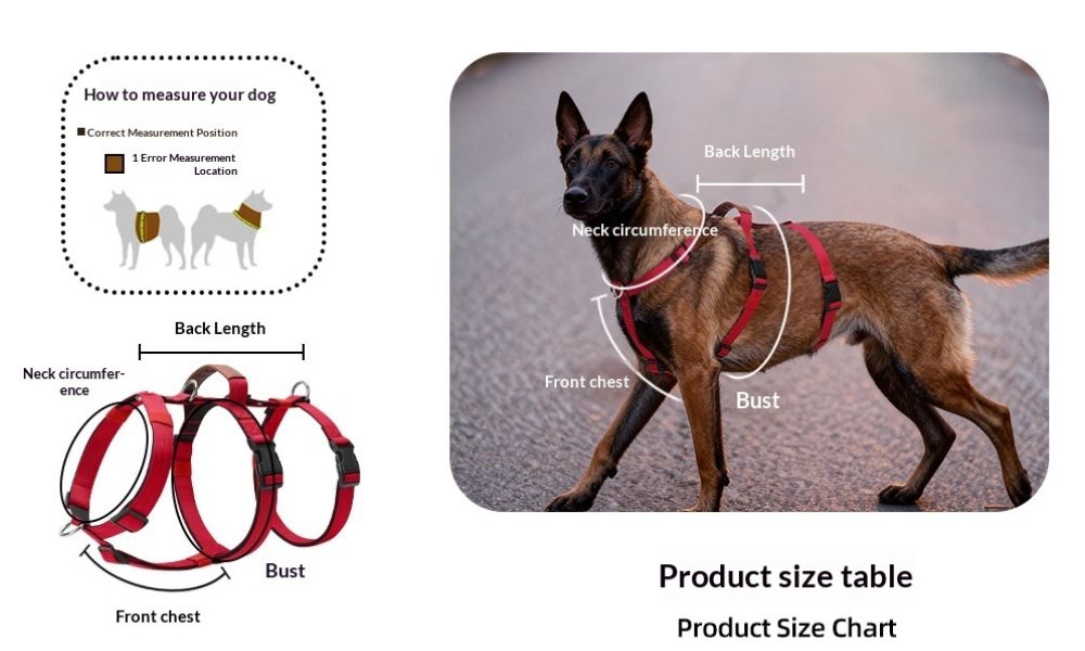 Measure your dog’s neck, chest, and back length and compare them with our size chart.